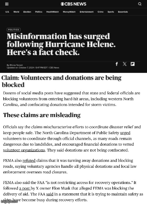 No… what I was told from a first hand source who I am close with who works in LOCAL law enforcement, is that non locals are not being turned away from the area, but that he almost wishes that they would be because they’re causing traffic and their heavy trailers and trucks are busting up compromised roads that they desperately need. He doesn’t work for FEMA. He’s a life long local.