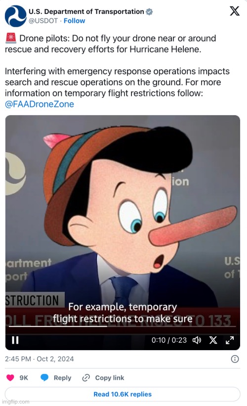 Then Buttigeig says "There's also some safety issues. For example, temporary flight restrictions ..."