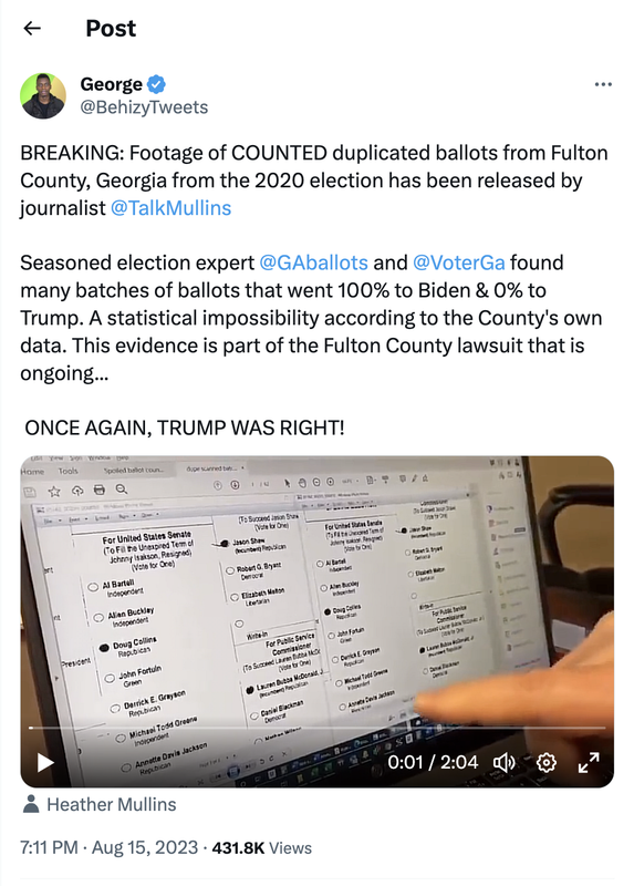 Footage of COUNTED duplicated ballots from Fulton County, Georgia from 2020 released