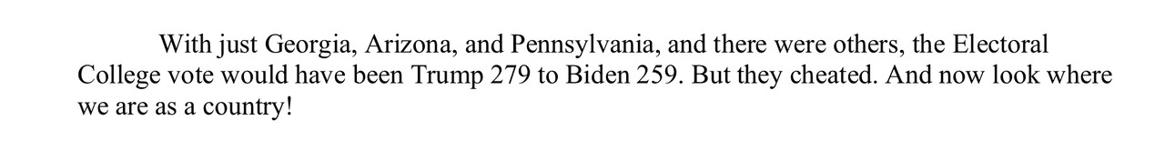 From a statement published by the Trump campaign prior to the fraudulent 2020 election being certified: