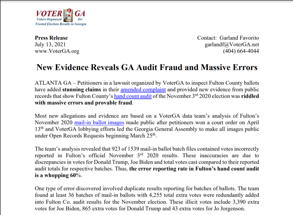 into Fulton Co. audit results for the November election. These illicit votes include 3,390 extra