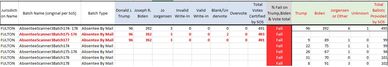 The peach-colored numbers are what were reported by Fulton to the SoS. Ignore the green fields to the right for now.