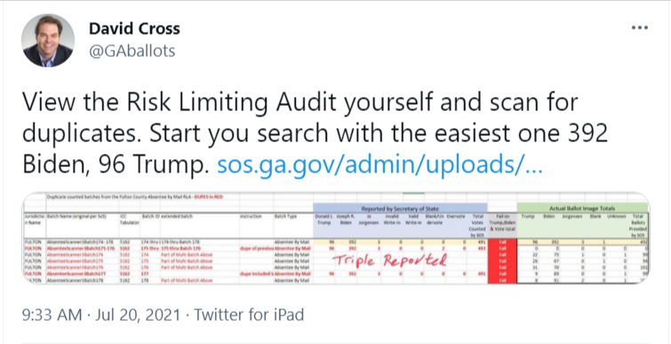 I suspect that a good programmer could do a routine that would automate quickly finding duplicate ballots. The problem is the crazy high number of "adjudicated" ballots in Fulton County.