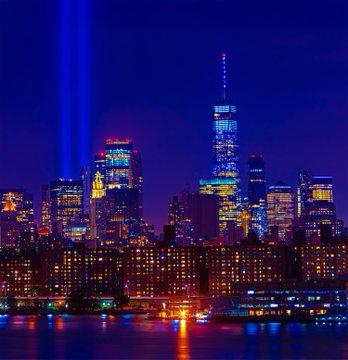 Tribute in Light graces the twilight skies above World Trade Center tonight, in a test run ahead of the 19th anniversary of Sept. 11. #NYC #TributeInLight #NeverForget
