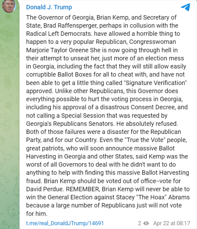 Gov.Kemp in collusion with the democrats in an attempt to oust MTG from seeking re-electio