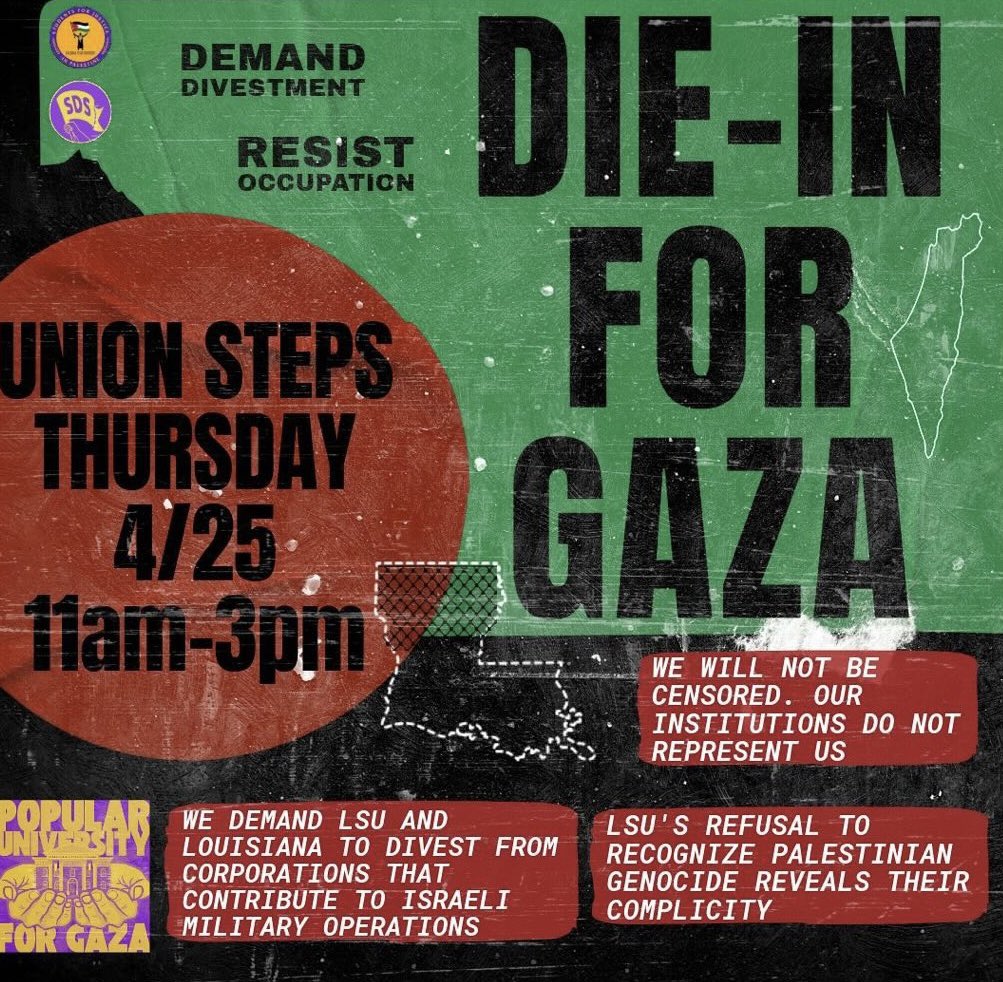 I searched and can’t find anything current. There are some videos from 2021 of another “river to the sea “ protest on the LSU campus.