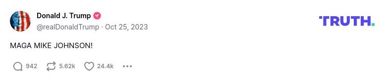 “Speaker Mike Johnson is a good, hard working, religious man. He will do the right thing, and we will continue to WIN. Mike has my Complete & Total Endorsement. MAGA!” -- Trump Dec 30 2024