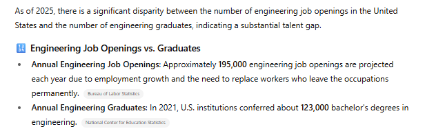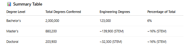 I googled how many engineering students graduate annually in the USA. Several results came back with the same