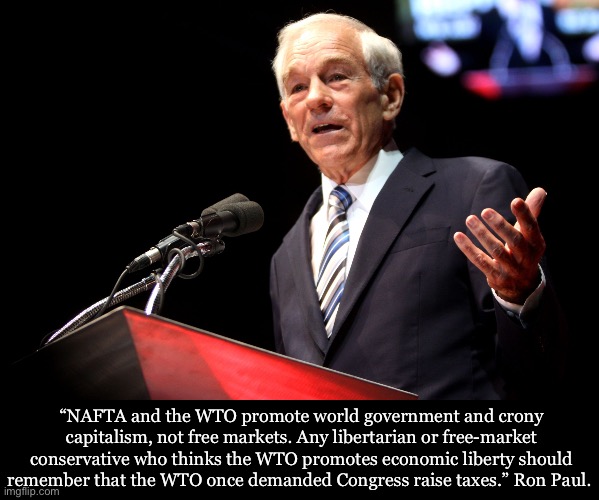 I'm against the US economy being used to improve the lot of the billions of people in other countries while lowering the standard of living for US residents.
