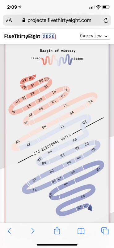 538 is currently projecting what I think is the worst case scenario for Trump... losing all the blue shaded states up through AZ. Best case scenario IMO is Trump winning all the states up through Maine. Colorado and Virginia are too far gone.