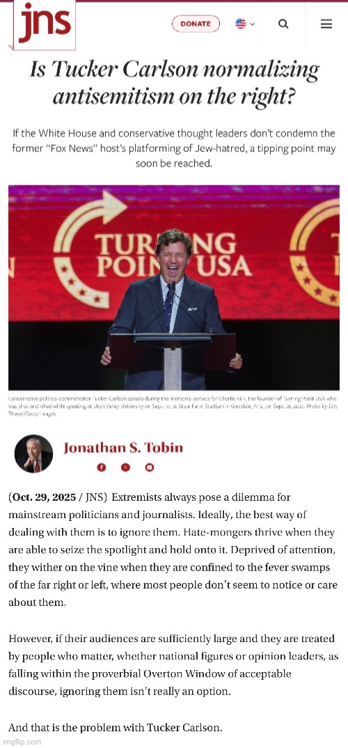Tucker, Candace and Nick Fuentes are just as evil and just as insane as anyone on the Left. They all operate under the thin veil of "Christianity" when they couldn't be any further from being Christ-like. Two heads of the same coin as the Leftist that preach division and hatred.