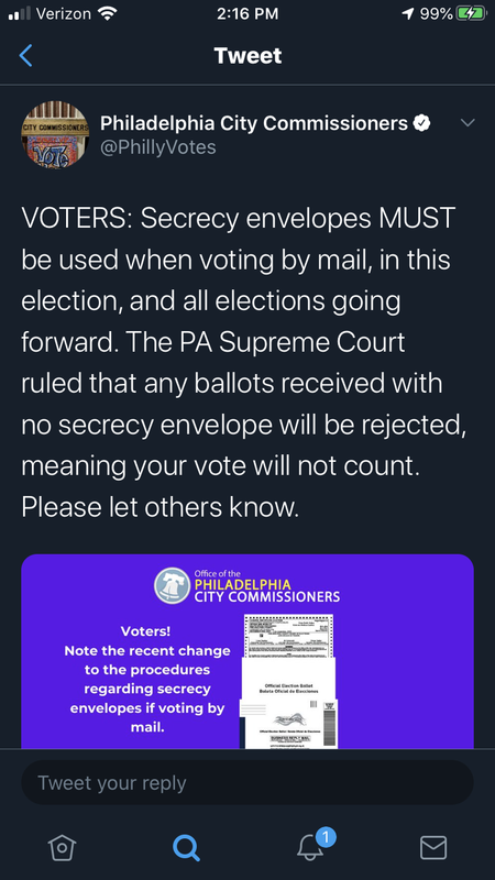 Dems are freaking out because it could invalidate 30-40% of the mail in votes and 40-50k votes in Philly alone.