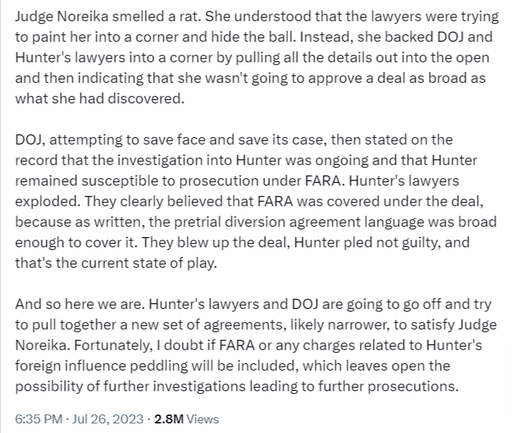 re: Hunter Biden Plea Deal Yo-Yos in Wake of Ongoing FARA Violations