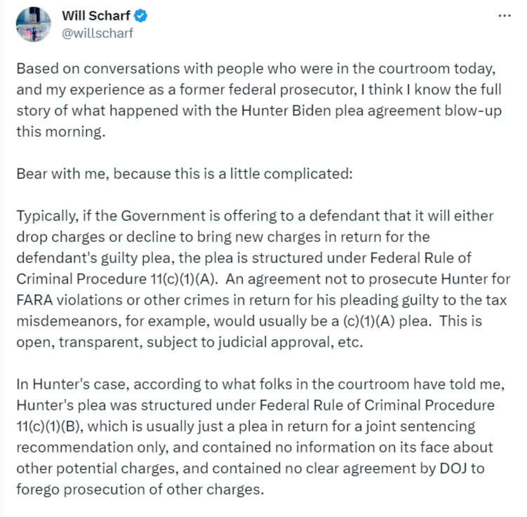 Both Hunter Biden and the Biden Justice Department wanted an arrangement that would give Hunter the maximum amount of immunity from prosecution for the minimum amount of criminal admissions they thought they could get away with.