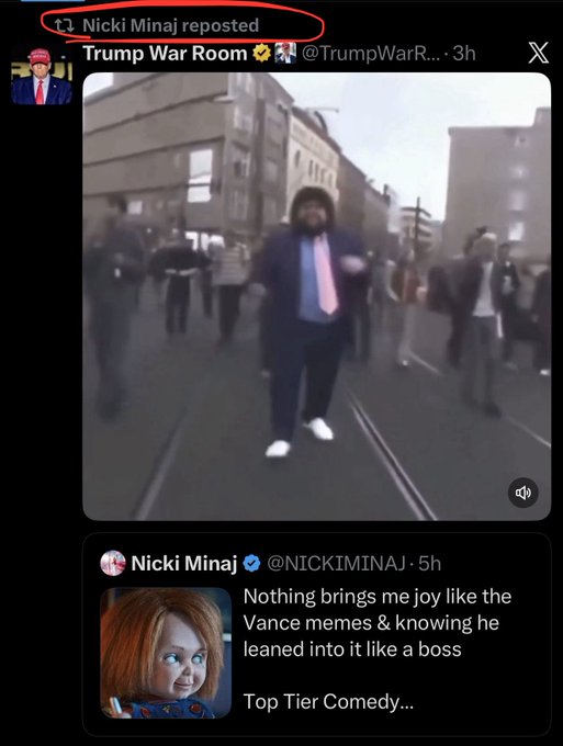 In her defense, I don't remember seeing any previous full on efforts where Nicki Minaj was campaigning for or against Trump.