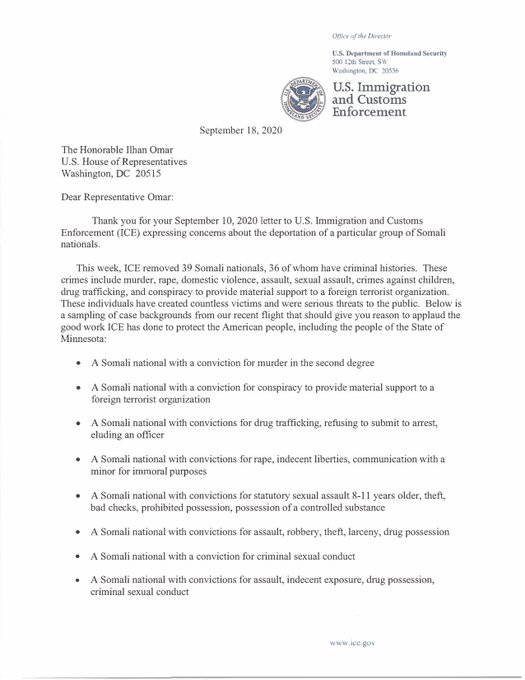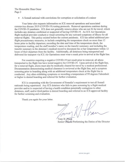 ICE is set to deport dozens of individuals from my district to Somalia, risking the spread of COVID.