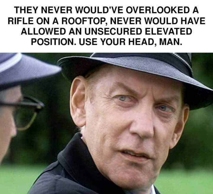 I was thinking incompetence until I heard the quote today about not posting agents on the roof due to the slope. Meanwhile where is a sniper team on a sloped roof that the entire world has seen. Nobody could be that incompetent.