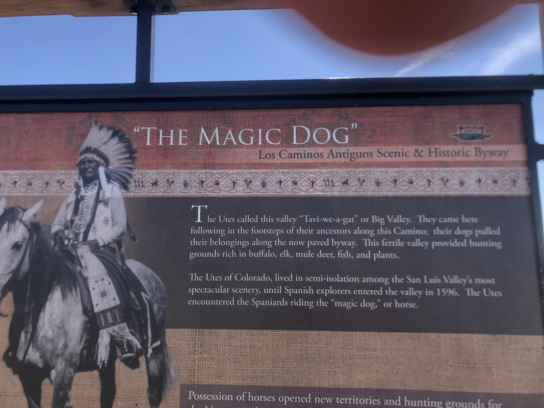 The first tribes that saw Spaniards with horses thought they were big, magic dogs. Per a sign on the road leading into Great Sand Dunes NP. Took a pic this summer: