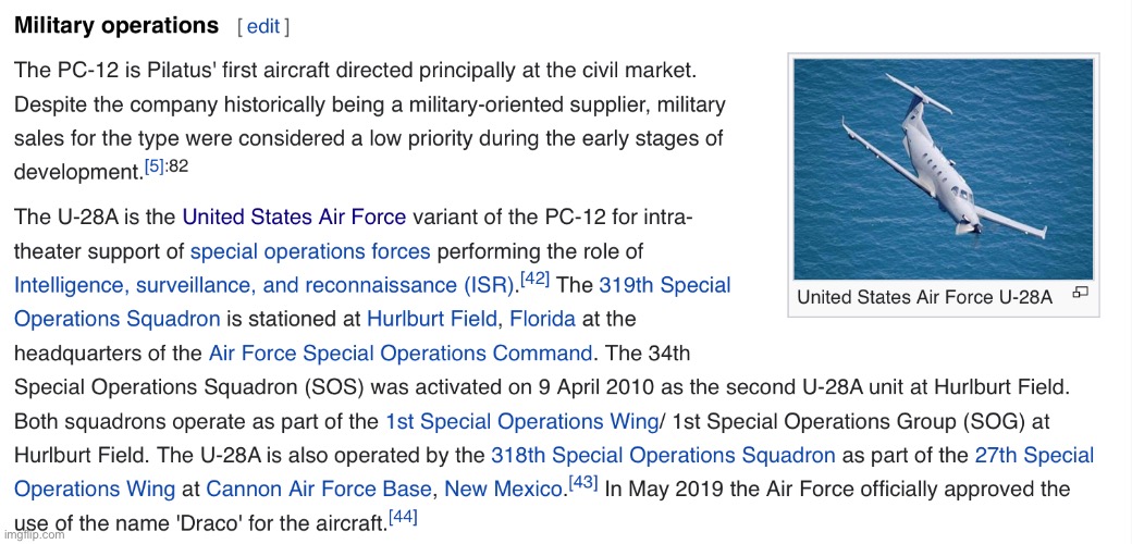 He’s right. The Pilatus is a commonly used platform for intelligence gathering overseas.