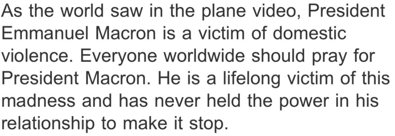Podcasts from her basement lmfao. Her and her husband are worth like $200 million combined. I don’t know why she wants to die on this tranny hill like anyone in the US even gives a frick if Macrons wife is a dude.