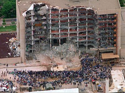 Also, in the Oklahoma City Building, notice that the giant columns at the four corners of the building are still intact.