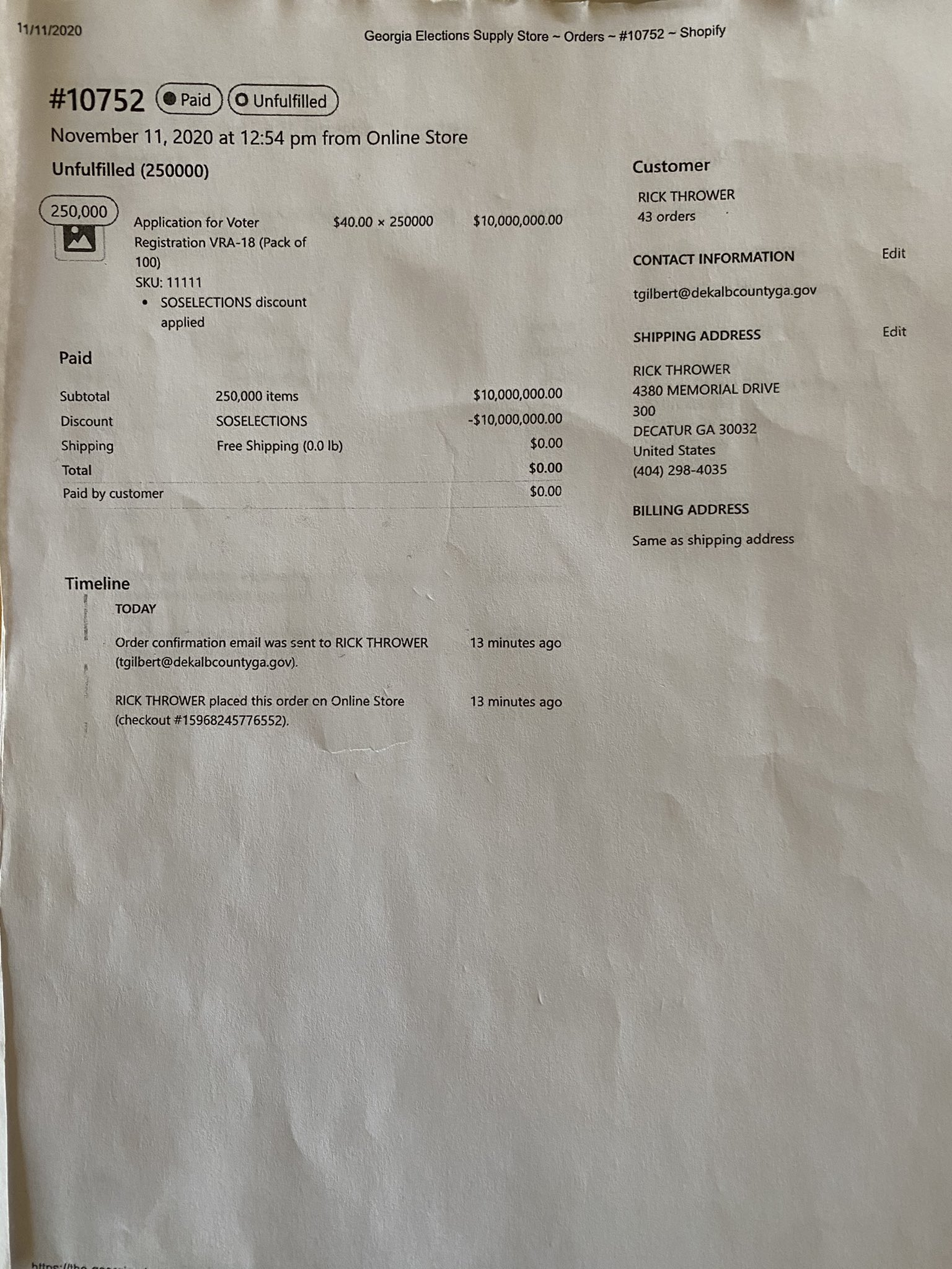One GA County ordered 25,000,000 voter application forms on Nov 11th, more than 2.5x the States population.