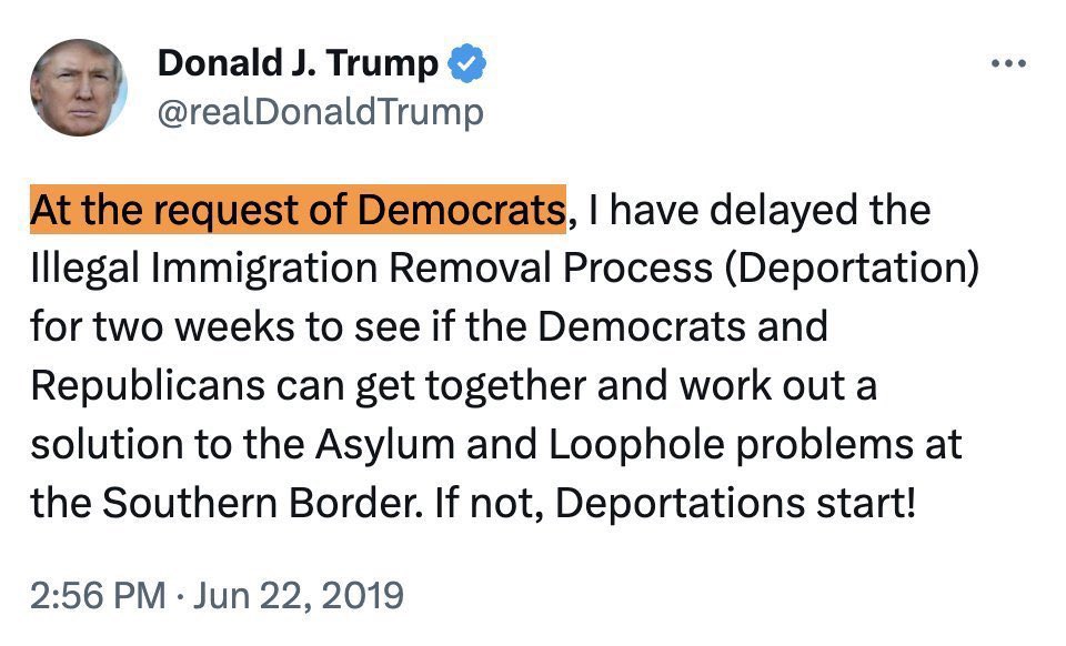 There are many such posts just like that "at the request of Democrats", he actually said out loud he didn't do certain things because "the Democrats would be mad".