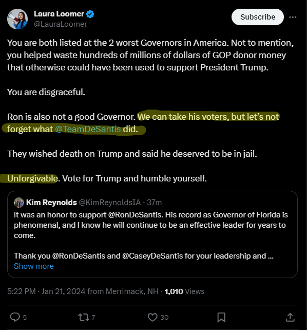 You want more? Because Loomer has been on a 24 hour bender coming after Ron even harder.