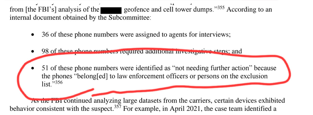 Contrary to lies from the FBI, they were able to geofence the cellphones of people in the area at the time the pipe bombs were planted. Discovered this nugget in the January 2025 House report.