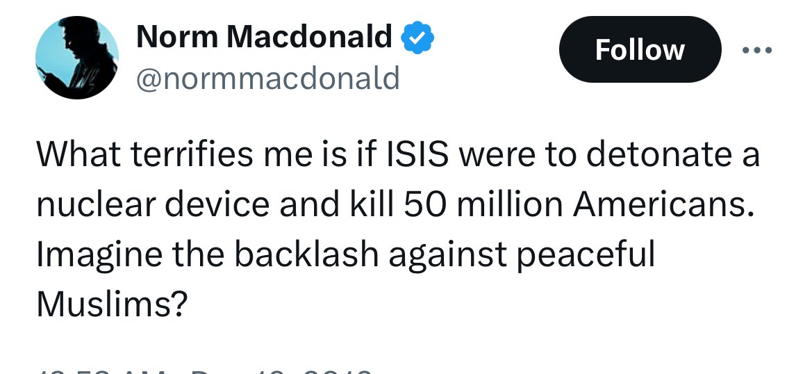 So if a KKK member were to do a mass shooting at a LGBTQ nightclub, would he be on camera saying to protect all nice KKK members??
