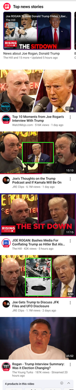 type in Rogan Trump or Trump Rogan to see what that search result looked like 20 minutes ago