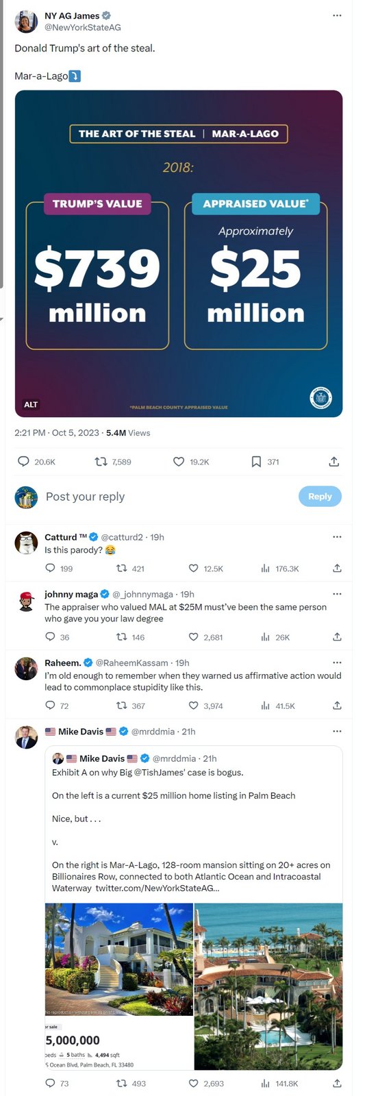 Oh I also think Trump’s numbers are BS. I am not an appraiser, and couldn’t tell you what it’s worth, but 18 million seems ridiculously low. 27 million I could believe
