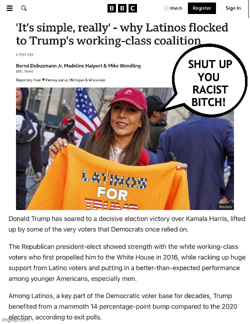 hat someone needs to start confronting the Joy Reids of the world with is that Trump gained in every racial group between 2020 and 2024 except one.