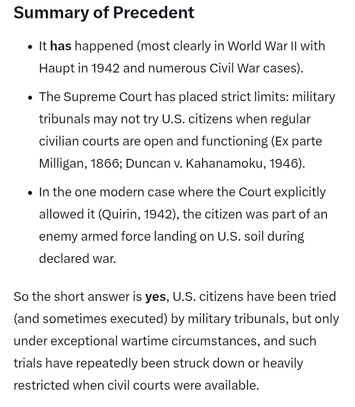 "military tribunals may not try U.S. citizens when regular civilian courts are open and functioning"