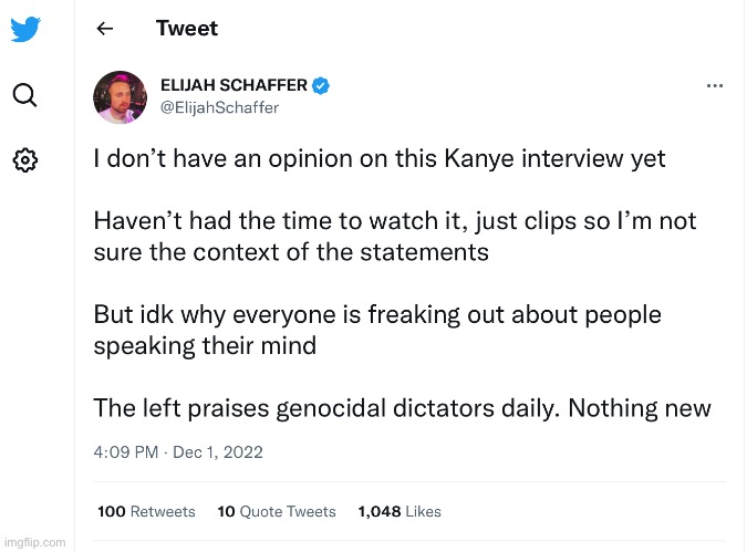 I watched the entire thing. Ye said he loved everyone. Nazis. Jews. Name the group/race, he loved them.