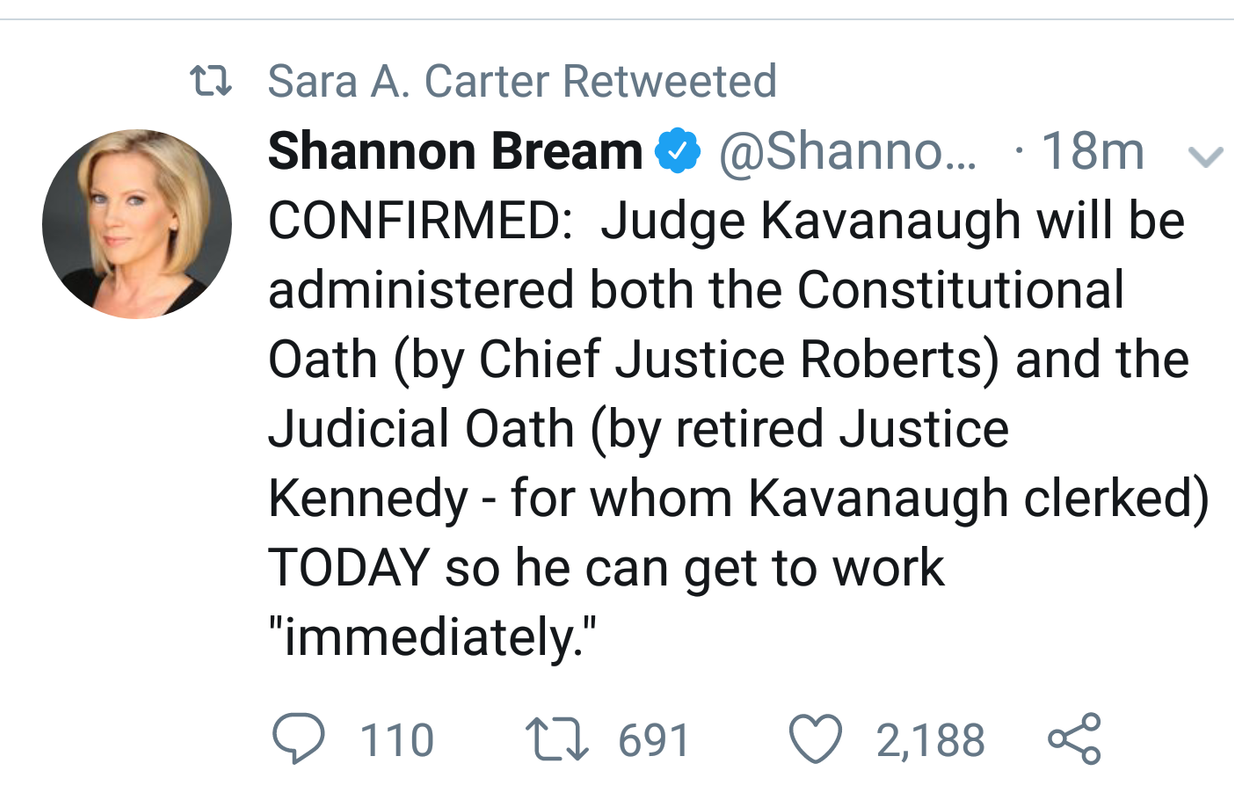Kavanaugh To Give Oath Today So He Can Start Immediately