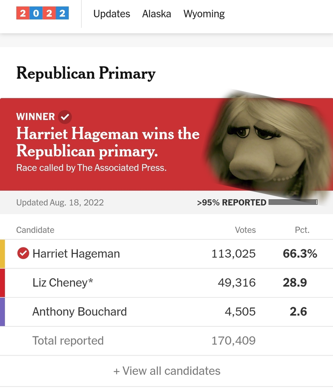 Nov 22 "In its second formal rebuke of Wyoming Republican Liz Cheney, the state party passed a resolution this week to no longer recognize her as a member"
