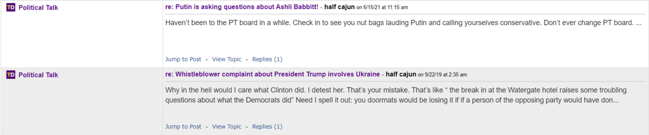 That said, I enjoy argument and debate here...but not from accounts that get dusted off on rare occasions to throw rhetorical bombs and then go back into mothballs. I prefer to engage with posters that have a history here, whether I agree with them or not, because I have a much better perspective on where they are coming from, if they are an honest actor, if they are worthy of spending time engaging with at all, etc.