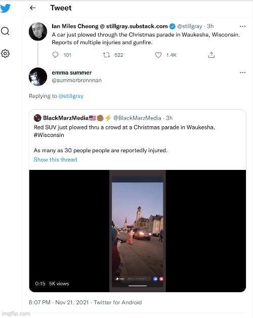 re: "Mass casualty" event underway in Waukesha, Wisconsin