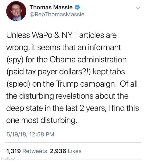 While many GOPe Republicans like Graham distanced themselves from Trump during the Russiagate controversy, Massie was shining a light on the skullduggery by the IC during the closing days of the Obama administration: