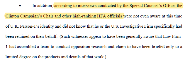 It's also worth mentioning that Durham filed a motion seeking to compel Perkins-Coie to produce 1400+ documents. P-C's defense is that those are protected by AC privilege.
