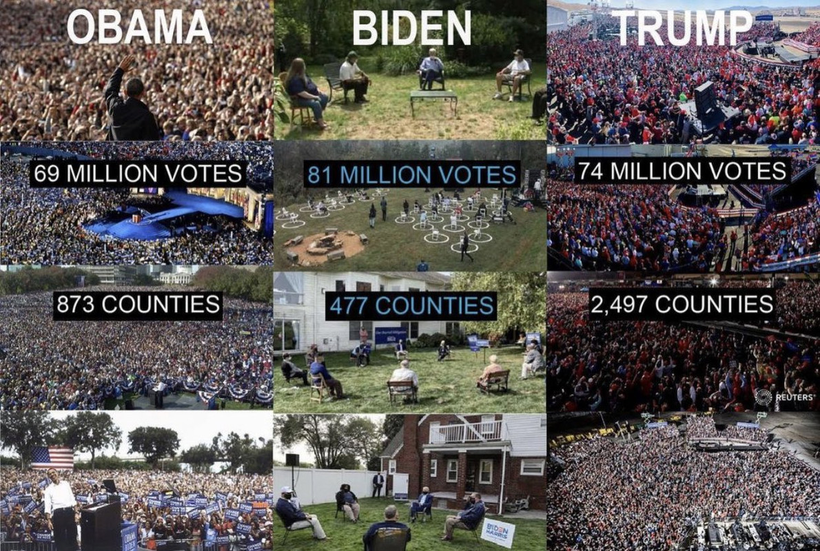 So Biden won half the counties that Obama did but got 12 million more votes. So the big city centers in America went for Biden at a historic rate vs Obama, the black Jesus. Uh uh...right.