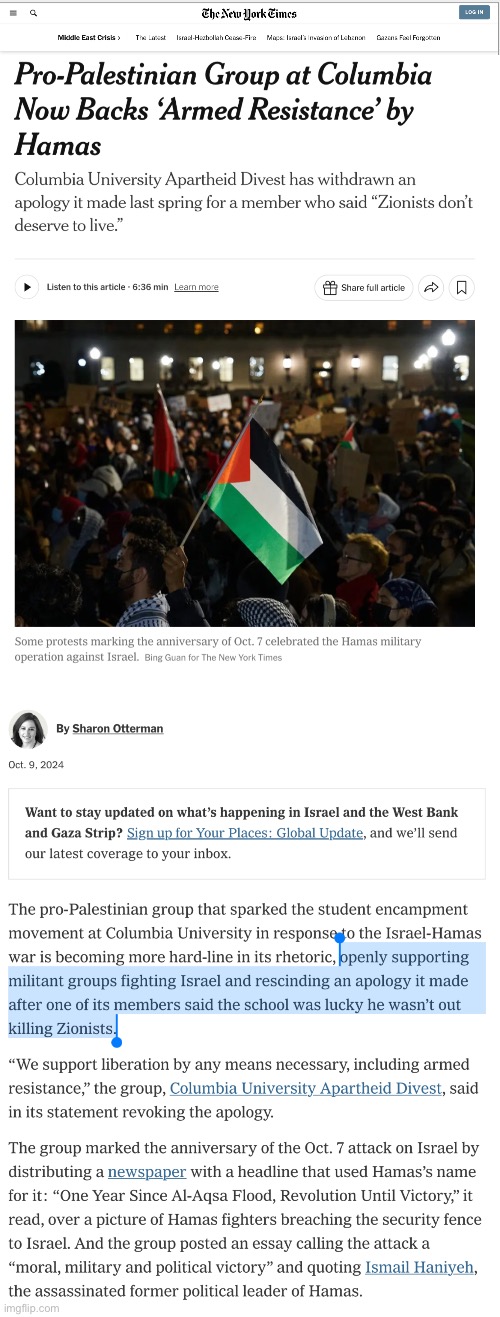 The 1st Amendment protects peaceful assembly to redress political grievances — other behaviors — such as blocking access to classrooms, occupying administrative offices, harassing other students, and/or threatening to kill Zionists aren’t 1st Amendment considerations.
