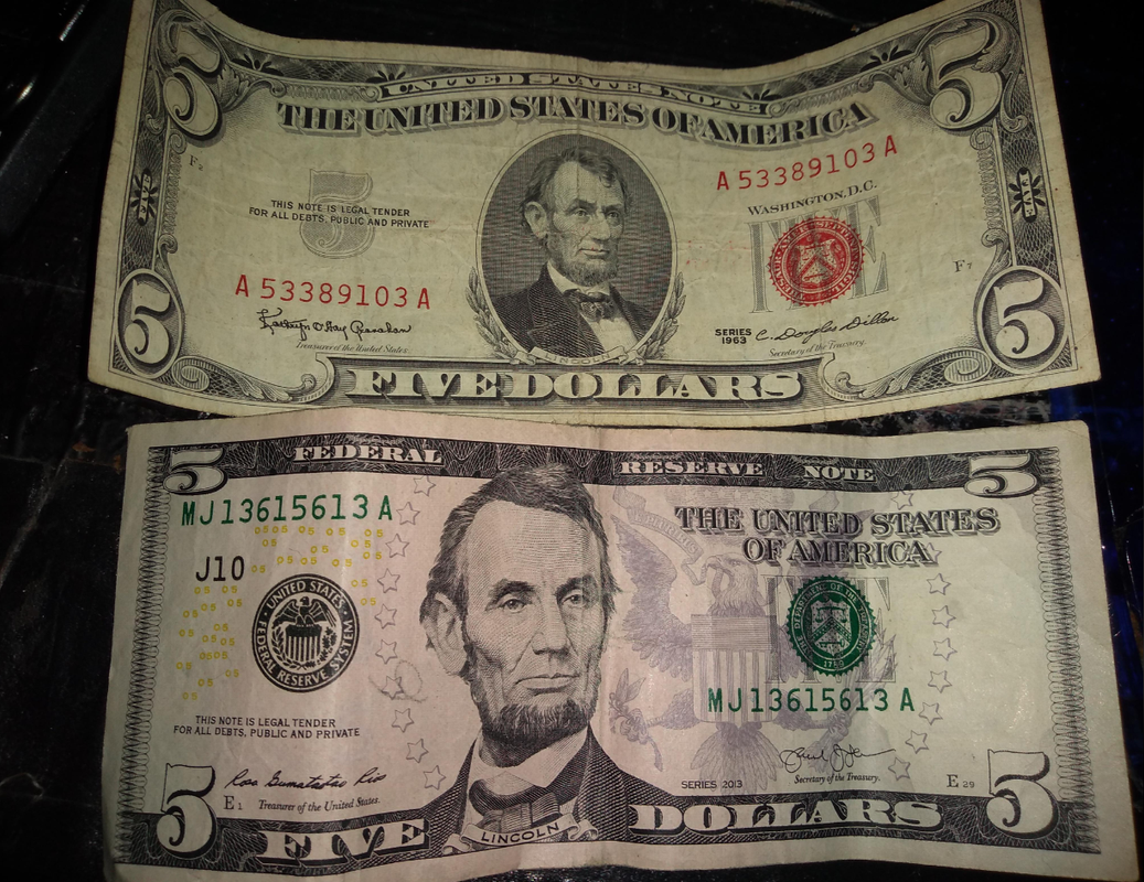 Since we are talking about money, does anyone know the difference between these two $5 dollar bills? Both are legal tender today.