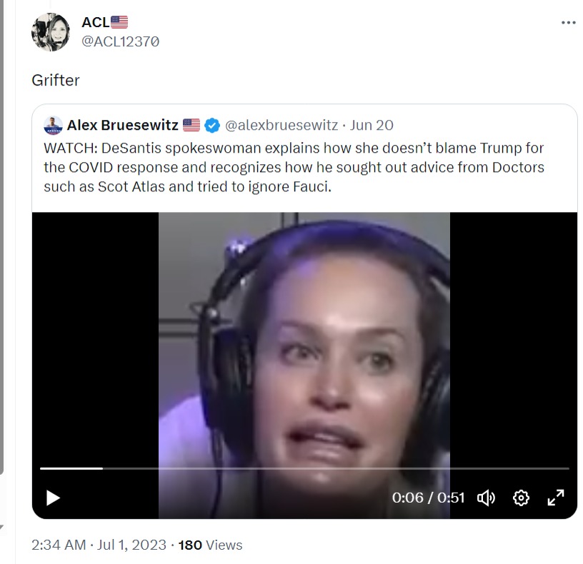 People are overestimating what Pushaw does. She’s just there to hit people on social media and put out statements for DeSantis in response to attacks.