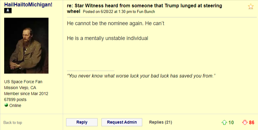 quote:For a board that complains 24/7 about people on the right imploding the movement, there sure is a lot of love here for this guy who should be poliboard enemy #1 for it.