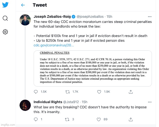 re: Not only did the CDC reinstate the moratorium but they wrote new laws as well