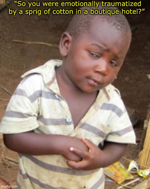 First, Serena finds racism in cotton-themed decorations at her hotel like they were specifically there for her, now this.