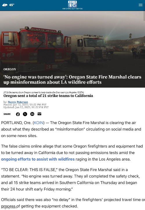 FOX 12 Oregon on X: "No, California is not stopping Oregon fire trucks for emissions testing, officials say