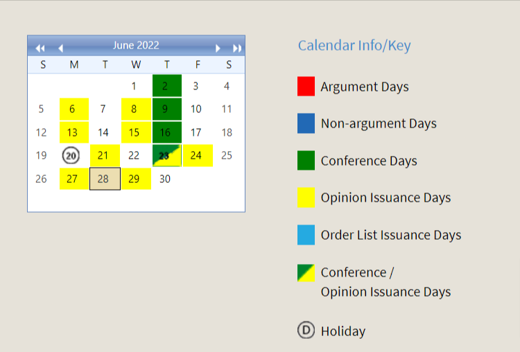 the opinion has to be out by the end of Thursday as Thursday is the last day of this current session... and tomorrow is currently the only opinion day on the calendar